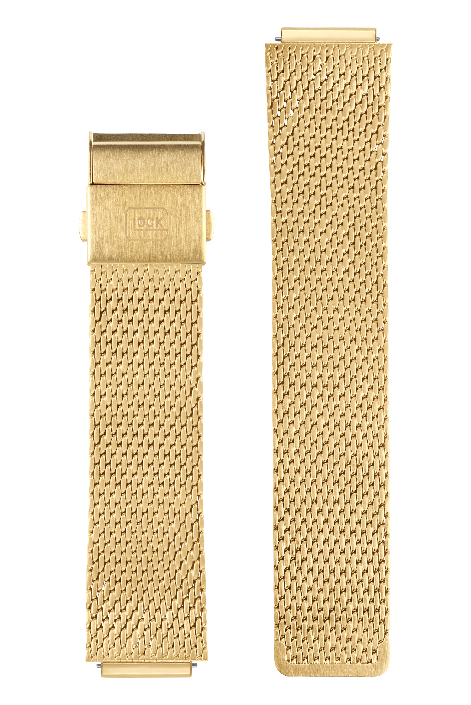 This stainless steel mesh strap combines elegance with reliable functionality. The gold-tone strap is available in one size and is complemented by the gold-tone clasp. Match the last two digits of the item number for a GLOCK Watch and for a strap to ensure compatibility.