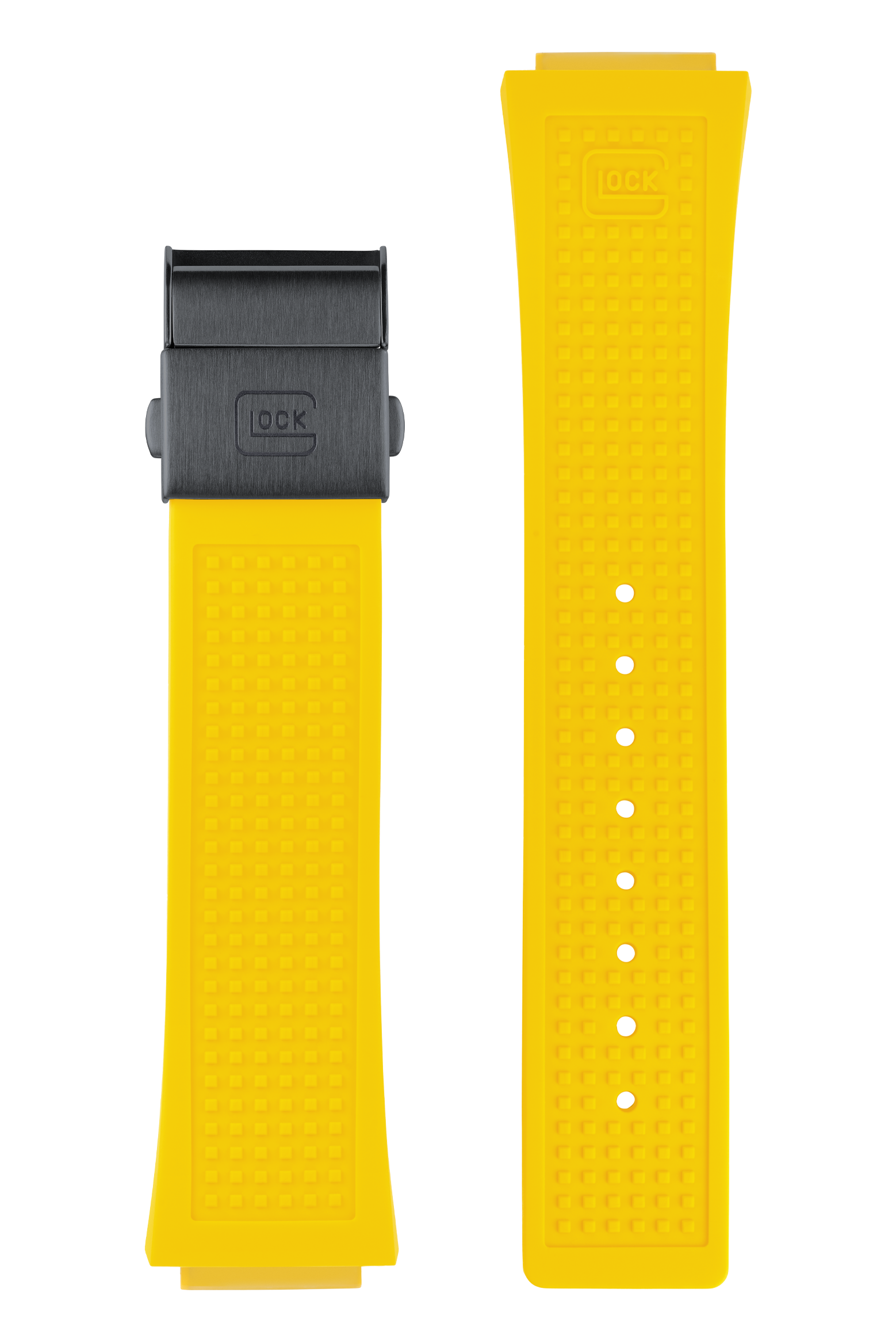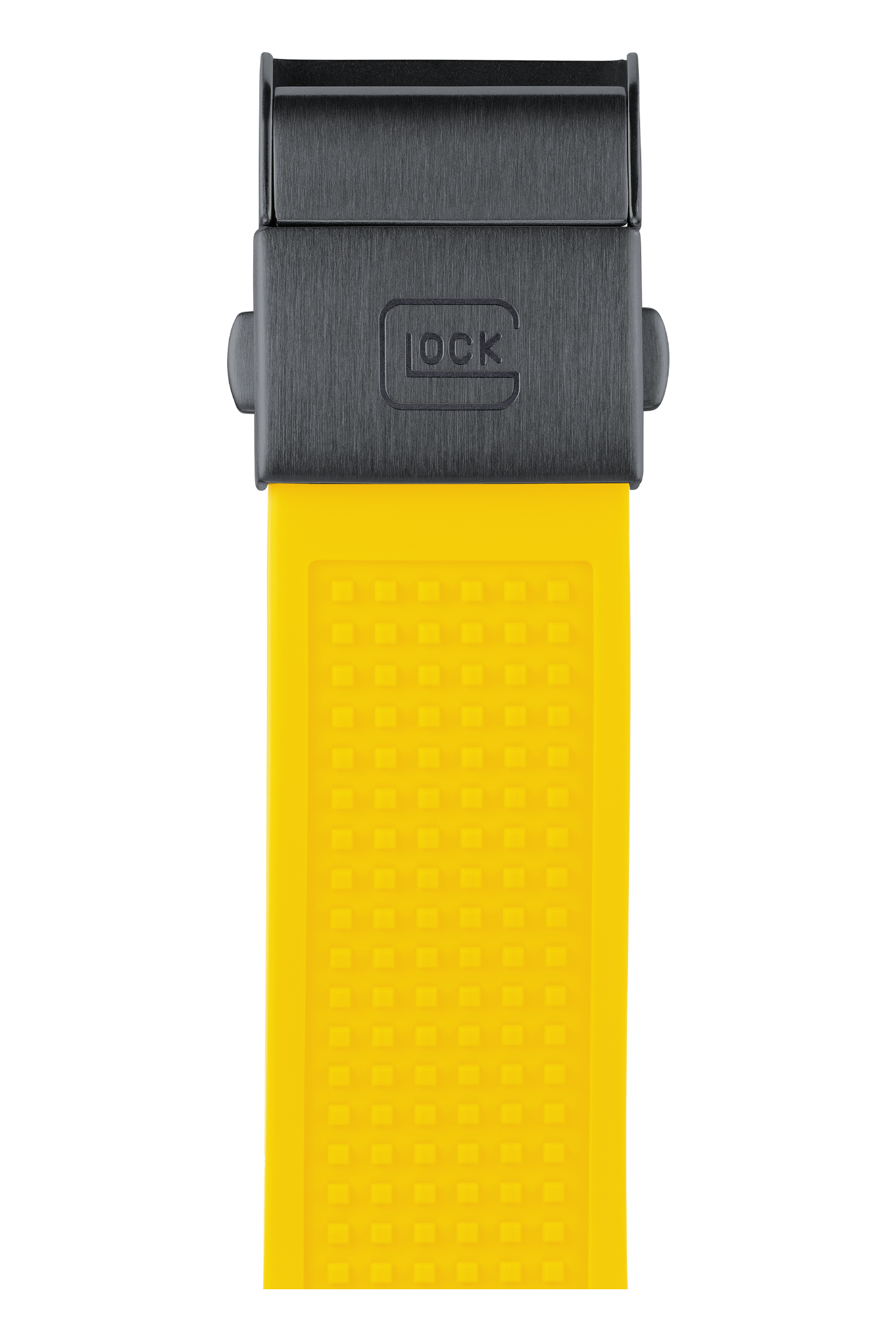 This silicone strap, adorned with the characteristic GLOCK RTF texture, combines durability with comfort. The yellow strap is available in three sizes and is complemented by the black clasp. Match the last two digits of the item number for a GLOCK Watch and for a strap to ensure compatibility.