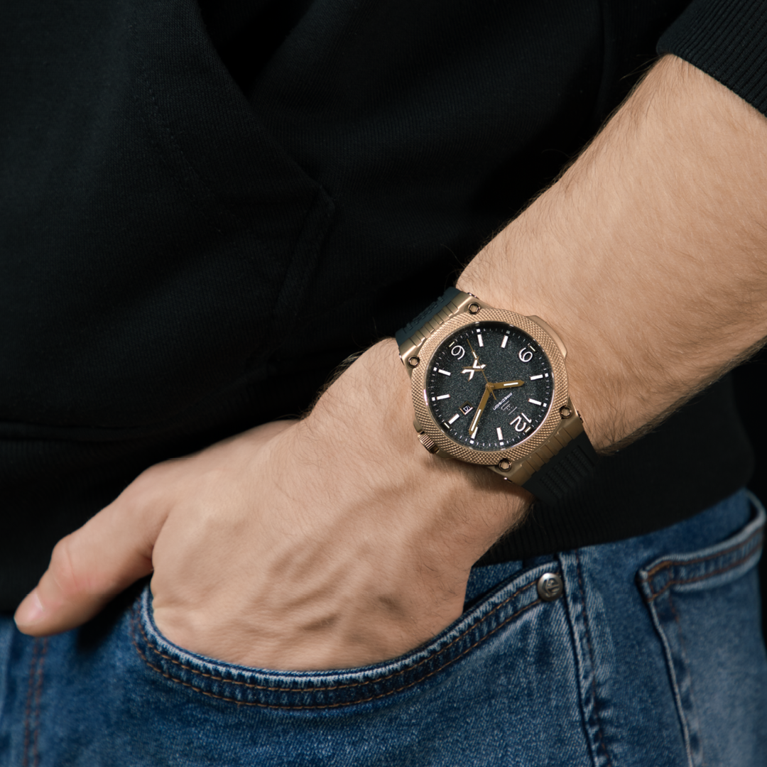 This timepiece unites modern design with GLOCK’s unmistakable DNA. The coyote-tone stainless steel case pairs with a black silicone strap, creating a bold contrast that underscores its tactical character. The dial bears the signature GLOCK X emblem, while a combination of Trigalights® and Swiss Super-LumiNova® ensures exceptional visibility in all lighting conditions. Framed by GLOCK’s iconic RTF-textured bezel and protected by scratch-resistant sapphire crystal, this watch is water-resistant to 10 ATM — engineered for precision and performance, on duty or off the clock.